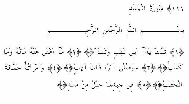 »Die Hände Abu Lahabs sind zugrunde gegangen, und (auch) er (selbst) ist zugrunde gegangen.«